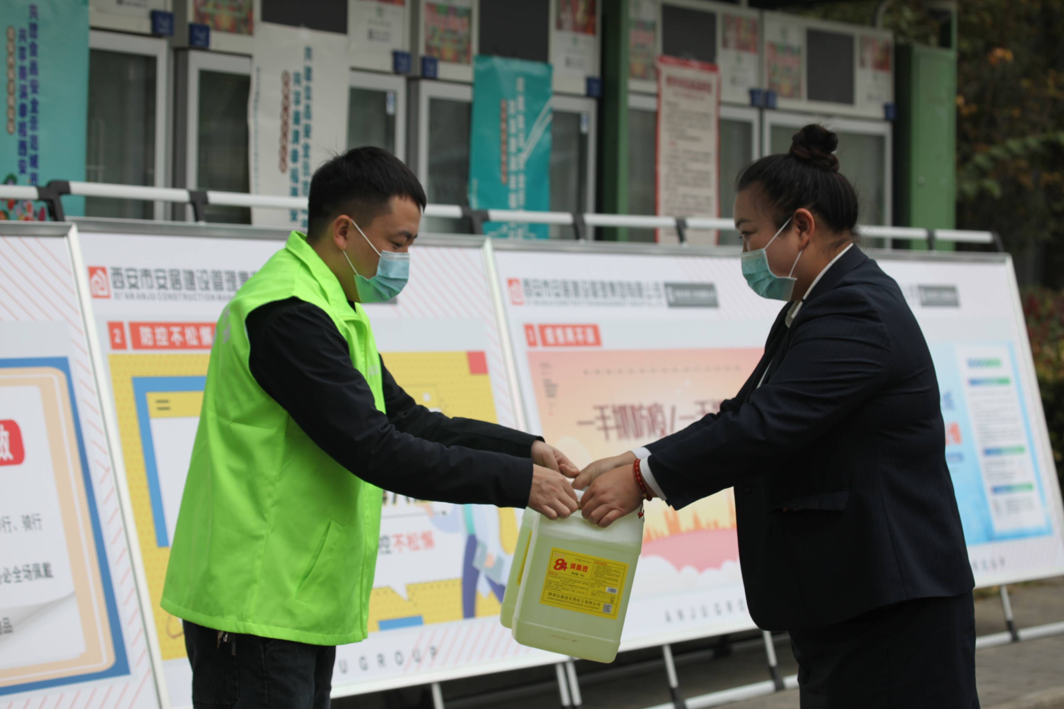結(jié)束項(xiàng)目現(xiàn)場(chǎng)的服務(wù)活動(dòng),志愿者團(tuán)隊(duì)立即趕往經(jīng)發(fā)新北居保障房小區(qū),在新北居物業(yè)的協(xié)助下,一同向居民耐心細(xì)致的進(jìn)行防疫知識(shí)講解,督促大家自覺佩戴口罩、減少日常聚集、養(yǎng)成良好衛(wèi)生習(xí)慣、積極動(dòng)員居民主動(dòng)接種疫苗等。同時(shí)發(fā)放公司制作的《新型冠狀病毒防控知識(shí)》宣傳頁,引導(dǎo)居民增強(qiáng)防控意識(shí),做好科學(xué)防護(hù),進(jìn)一步提升居民疫情常態(tài)化下的防護(hù)能力。為感謝對(duì)新北居物業(yè)對(duì)本次活動(dòng)的大力支持,志愿者團(tuán)隊(duì)為新北居物業(yè)送上消毒液和個(gè)人防護(hù)用品。