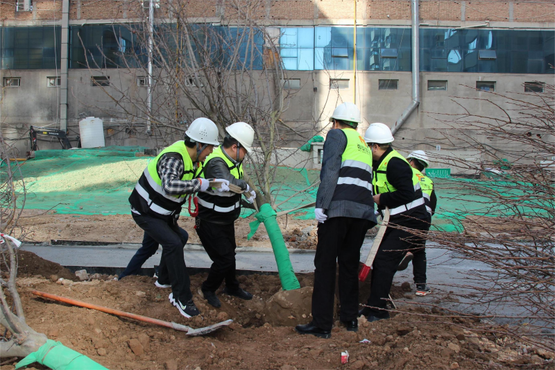 3月9日上午10點,在我公司黃金嘉境項目部現場開展本次植樹活動,西安大興新區開發建設管委會、西安聞達置業有限公司(建設單位)、西安市住總建設集團有限公司(總包單位)、陜西科興源工程管理有限公司(監理單位)領導帶隊,共同開展“植綠護綠·和諧共生”為主題的志愿植樹活動,參與植樹活動的志愿者共五十余人,總計植樹近30棵。
